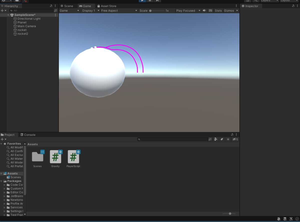 Unityでは、rigidbodyコンポーネントをオブジェクトにつけることで物理演算を適用させられる。rigidbodyコンポーネントにはgravityというチェックボックスがあり、チェックするとその物体は重力で下に落ちるようになる。しかし、画面中央に表示した星に物が落ちていく状況など、重力が下方向に働いてほしくない場面もある。この記事では簡単に万有引力を実装するコンポーネントのC#コード例を載せる。