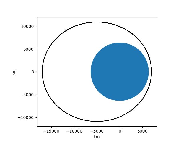t = np.linspace(0, 10000, 1000) # 1日分 軌道伝播