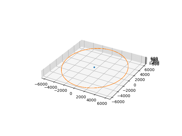 r0 = [6500, 0, 0, 0, 9, 0] # 位置(x,y,z)+速度(vx,vy,vz)